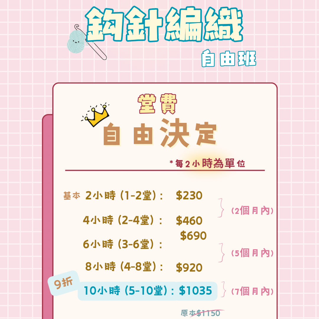 想學習鈎針編織?立即報名鈎針編織班:自由班